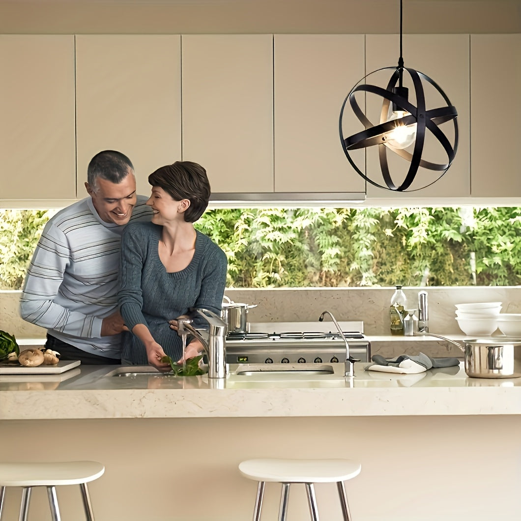 This black round pendant light features a semi-flush mount design with a detachable fixture for flexible installation. Suitable for spaces such as living rooms, hallways, kitchens, and bedrooms.